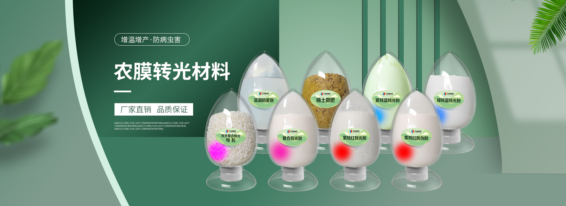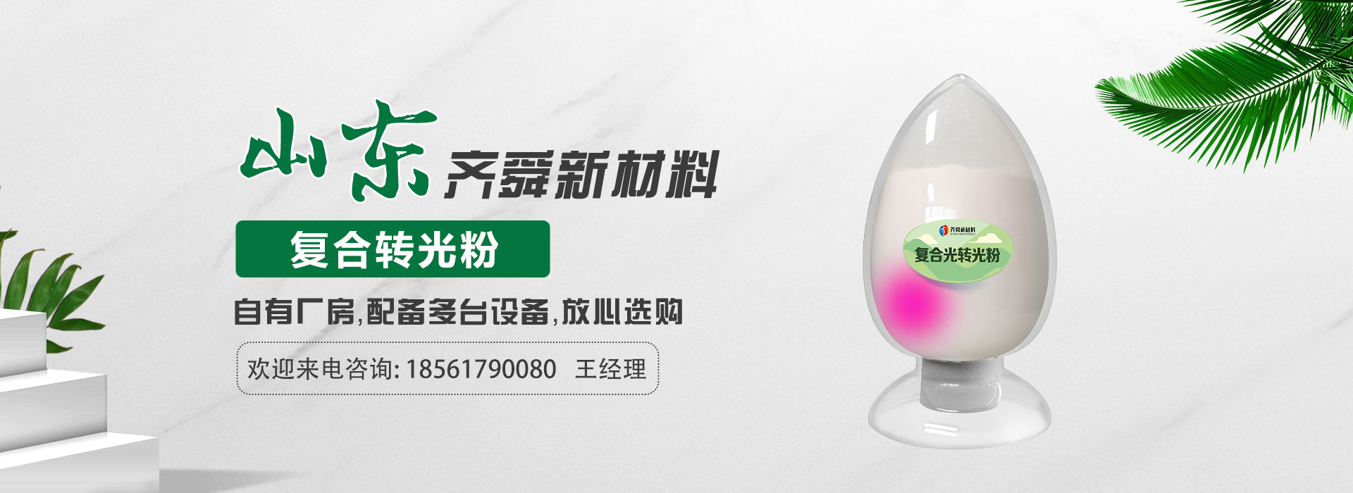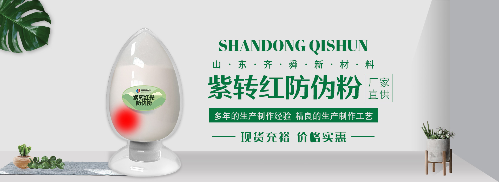 我公司前身為2011年成立的淄博舜明熒光科技有限公司。隨著公司的發(fā)展,廠址從淄博搬遷到青島,2020年5月公司重新注冊(cè)為山東齊舜新材料有限公司。公司注冊(cè)資本2000萬元,主要從事新材料研究和開發(fā)。目前主要產(chǎn)品包括:農(nóng)膜用轉(zhuǎn)光粉、轉(zhuǎn)光母粒以及轉(zhuǎn)光農(nóng)膜;農(nóng)膜用長效防霧流滴涂覆液;復(fù)合肥添加劑及葉面肥(稀土微肥);防偽粉;LED封裝熒光粉;夜光粉;太陽能光伏電池增效熒光粉;鋰電池正極材料等。